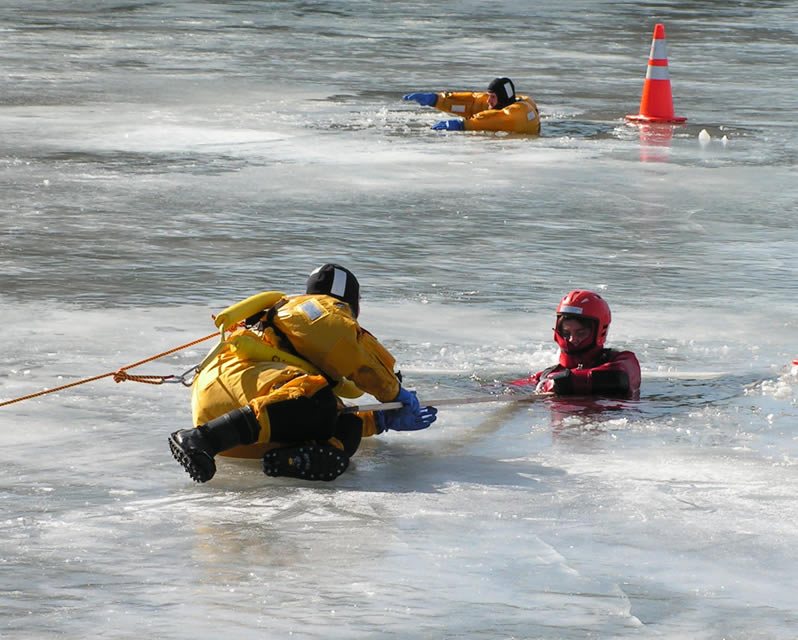 Plongée dans l'eau, une personne doit se débarrasser de tous les objets lourds, essayer de garder le corps à la surface et, parallèlement, tenter de grimper sur la glace. Les aides sont des objets tranchants, un couteau par exemple.