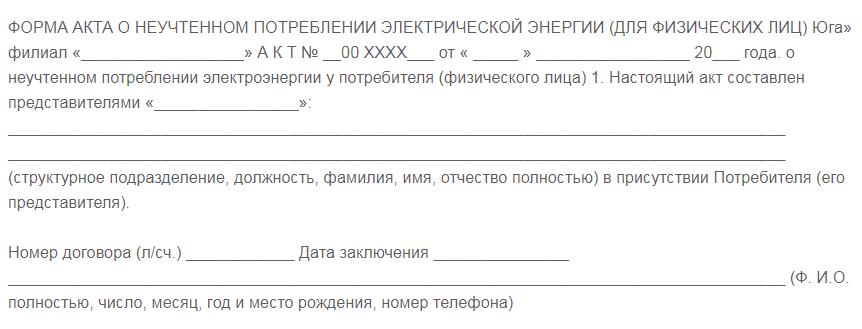 La consommation d'électricité non comptabilisée est enregistrée par les spécialistes de la société de vente à l'aide d'un acte. Il est compilé sous une forme spécifique. La violation de la procédure de compilation ou le manque de signatures des parties intéressées donne lieu à la considérer comme non fiable.