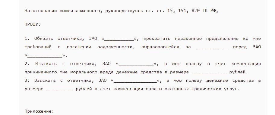 Le tribunal examine uniquement les demandes présentées au défendeur dans la demande. Par exemple, le demandeur dans la réclamation a demandé une indemnisation, sans mentionner la peine. Le juge examinera la réclamation uniquement en termes de paiement de dommages et intérêts, et les réclamations concernant la pénalité seront ignorées.