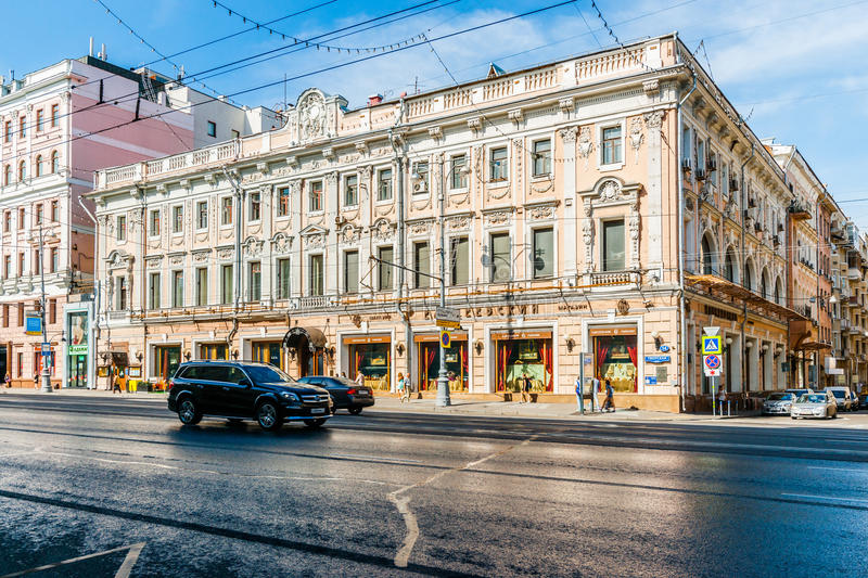 Grigory Grigorievich Eliseev, un commerçant, a déjà décidé d'ouvrir de grands magasins proposant des produits gastronomiques coloniaux à Moscou et à Saint-Pétersbourg. Le manoir de Moscou acquis a été martelé avec des échafaudages en bois, ce qui, en fait, n'était pas pratiqué, et a entrepris une révision majeure et une reconstruction.