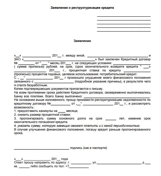 - loss of employment associated with the closure of the enterprise, reduction or other circumstances beyond the control of the borrower, therefore, if he quits for violations or by drawing up an application of his own free will, restructuring will be refused;