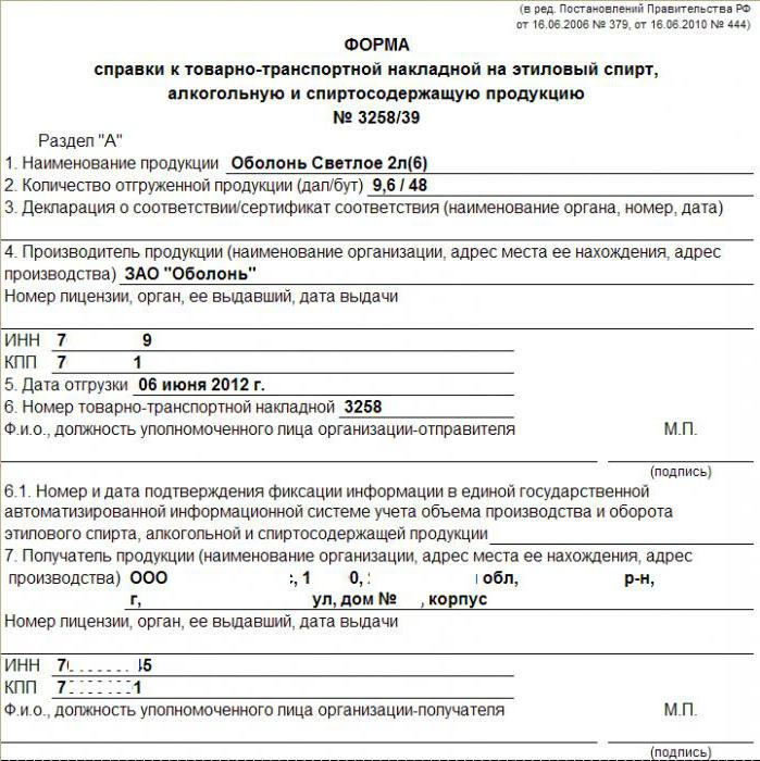 - The certificate attached without fail to TTN (or the consignment note). This form of reference is needed in cases where the production of alcohol and alcohol products is carried out on the territory of our state.