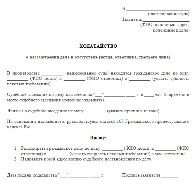 D’autres questions sont plus compliquées, mais l’ensemble des preuves y est présenté et son apparence n’a pas non plus beaucoup de sens. La demande d’examen du cas en l’absence du demandeur est présentée soit en même temps que la demande, soit directement dans son texte.