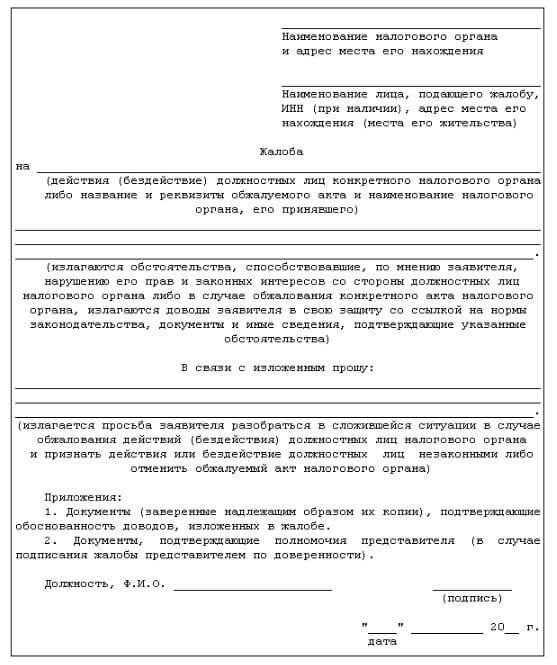 Il est important de comprendre au nom de qui cette déclaration est en cours d’élaboration. Le destinataire est le responsable du service du service fédéral des impôts auprès duquel la société est enregistrée. Le demandeur peut choisir indépendamment lequel des responsables du service fédéral des impôts déposera une plainte, comme indiqué à l'art. 138 Code des impôts.