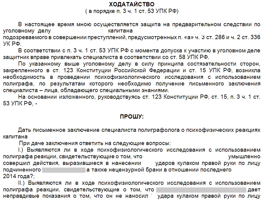 La loi a également le droit de déposer une requête auprès d'un expert n'ayant officiellement aucun lien avec la défense ni avec l'accusation. Les pétitions et les plaintes dans les procédures pénales sont soumises à l'adresse de l'enquêteur (agent qui interroge), du procureur (qui exerce des fonctions de supervision pendant l'enquête).