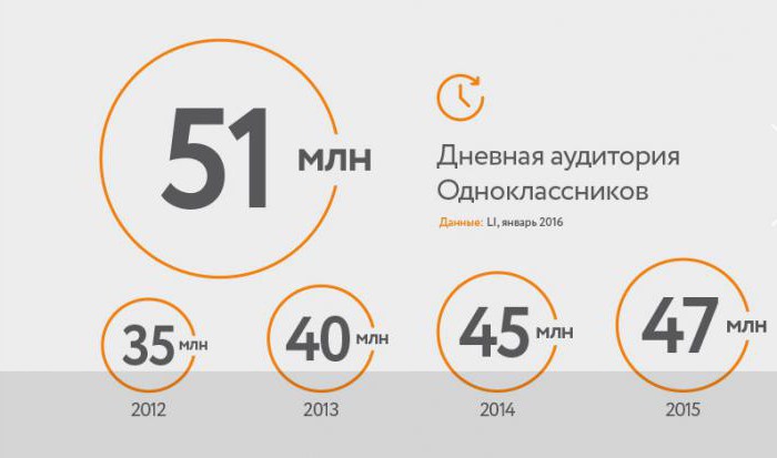 L'âge moyen d'un utilisateur d'un réseau social est beaucoup plus élevé que sur d'autres sites. Le public principal est constitué des 18 à 54 ans. Le segment des clients potentiels solvables est largement représenté sur le site, ce qui a un impact positif sur les activités d’Odnoklassniki.