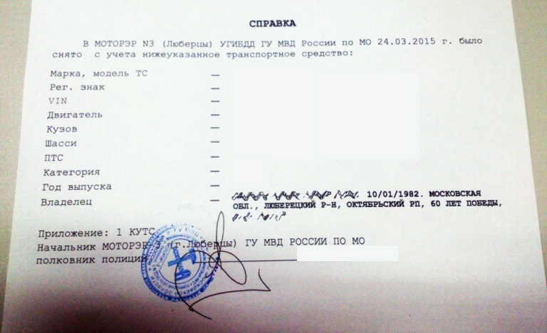 Important: comme nous l'avons déjà dit, les données sur les propriétaires de véhicules sont enregistrées dans la base de données de la police de la circulation. Et par conséquent, le manque de documents ou de machine de désinscription n'est pas un gros problème.