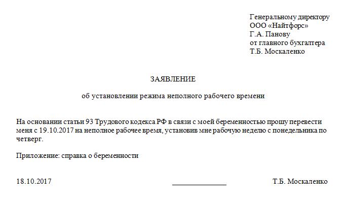 Le plus souvent, le temps partiel est défini à la demande d'un spécialiste recruté directement. Les modifications peuvent être introduites pour une courte période ou pour une durée illimitée. Pour commencer la procédure, le collaborateur établit un relevé spécial dans lequel sont indiquées les informations suivantes:
