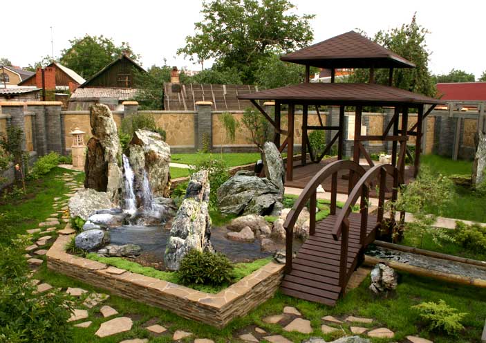 Au cours de ces mêmes années, les sages japonais, qui affirmaient que la recherche de la vérité n’était possible que dans le processus de la contemplation, avaient parlé de la pierre comme base du jardin et de son élément intégral. Le minéral est apparu dans les jardins du pays du soleil levant, non seulement sous sa forme naturelle. Il a également été utilisé pour créer diverses sculptures portant une signification sacrée et parfois symbolique. Le jardin japonais, dont la superficie n'excédait généralement pas plusieurs mètres carrés, ne s'est jamais maintenu sans l'installation de petites formes architecturales en pierre. Cela pourrait être des fontaines décoratives ou une petite pagode.