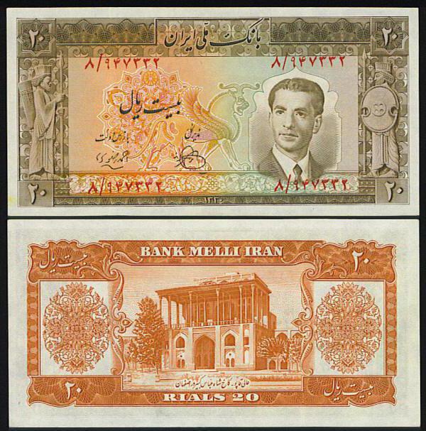 De 1944 à 1979, le dernier shah, Mohammed Reza Pahlavi, qui a dirigé l’État de 1941 à la Révolution islamique, était imprimé sur des billets de banque en papier. Il est affiché à l'avant du billet de banque. Il est à noter que les portraits du shah ont commencé à vieillir au fur et à mesure qu'il grandissait, puis ont vieilli en parallèle.
