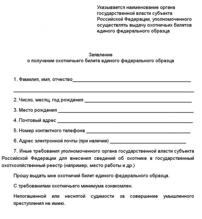 L'obtention d'un billet de chasse d'un nouvel échantillon, en plus de ce qui précède, nécessite que le demandeur connaisse les règles de chasse. À la réception de ce document, le chasseur place son autographe sous la déclaration, ce qui signifie que le destinataire confirme sa connaissance du minimum de chasse et des exigences. Pour certains chasseurs, un tel changement n'est qu'un bonheur: vous n'avez plus besoin de passer un examen pour connaître les procédures de sécurité ou pour le même minimum de chasse.