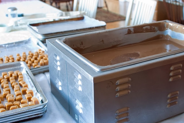 Pour les grandes productions, on utilise des machines de refroidissement traversées par un flux continu de masse de caramel. Le choix de ce type d’équipement dépendra de la taille de l’entreprise.