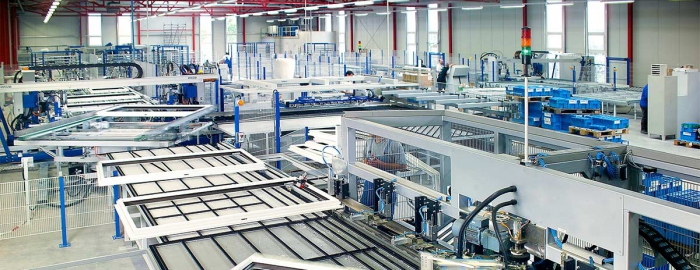 En principe, c'est assez compliqué, et la ligne elle-même est assez large et globale, mais compte tenu du degré d'automatisation, il ne sera pas difficile de traiter avec la fabrication. Tout d'abord, les ébauches de verre sont coupées. Les dimensions spéciales de la future fenêtre à double vitrage sont définies ici.