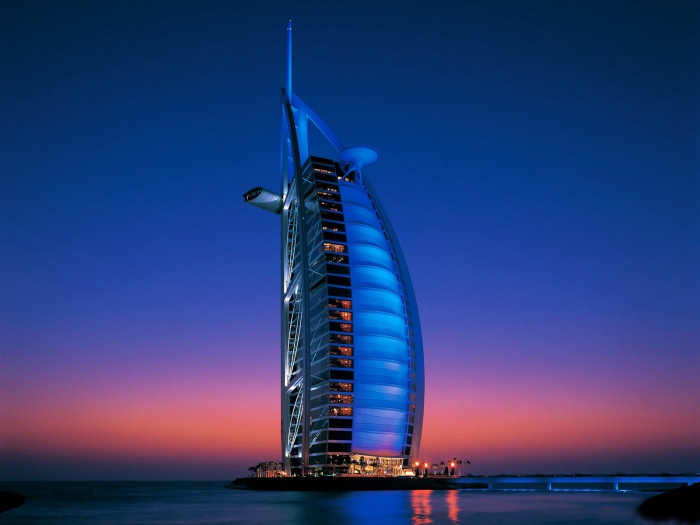 Le bâtiment est construit en forme de voile. Autour de celle-ci, une eau limpide et cristalline. Le bâtiment est considéré comme la marque de la ville de Dubaï. "Bourges Al Rab" fait également partie de la liste des 10 hôtels les plus chers du monde.