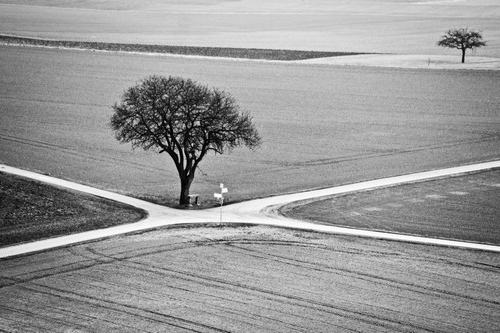 Intersection non réglementée de routes inégales