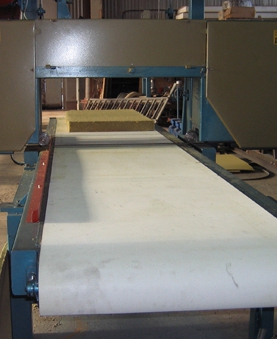 L'étape suivante de la fabrication prévoit que la chaîne de production de laine minérale alimente les fibres dans l'espace situé entre les convoyeurs verticaux jumelés. Utilisant des mouvements oscillatoires pendulaires, ils s’adaptent à un tapis en coton.