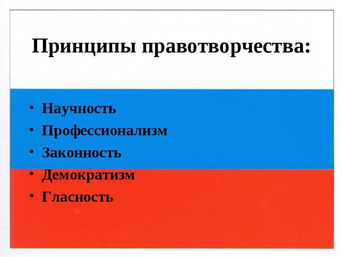 Les principes et les étapes de l'élaboration des lois incluent également les activités des autorités publiques, dont les actions visent la formation de lois. Il est important de noter ici que les organisations gouvernementales sont des acteurs clés dans le processus de création de normes législatives. C'est pourquoi les principes législatifs représentent un large éventail d'idées, de concepts, d'exigences et de réglementations. Considérons la première base.