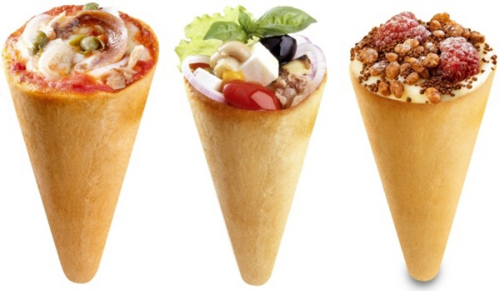 C'est une nouvelle tendance dans l'industrie de la restauration rapide. Les Italiens l’ont inventé à l’origine. Rappelle la crème glacée dans une tasse à gaufres. Seule la corne n'est ni sucrée ni gaufrée, elle est fabriquée à partir de tout type de pâte. À l'intérieur se trouve la garniture, qui va généralement à la pizza.