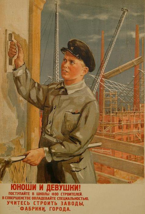 Jusqu'aux années 60 Les jeunes soviétiques ont reçu une formation professionnelle dans les écoles de la faculté de droit fédérale. Afin d'accélérer la préparation de professions ouvrières d'un profil général d'un niveau inférieur de l'économie du pays dans les républiques fédérées, un réseau d'écoles FZO a été créé (décodage en URSS - écoles de formation usine-usine). L’histoire de ces institutions a commencé dans les années 40 du siècle dernier. Mais à l'heure actuelle, le décodage de la loi fédérale sur la loi fédérale peut poser certaines difficultés aux écoliers et aux candidats modernes.