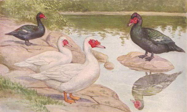 À la base du bec et des yeux, les canards musqués ont des excroissances spéciales, qui sont des verrues pigmentées. Le plumage chez les oiseaux peut être bleu-blanc, noir ou chocolat. Dans la plupart des cas, le corps présente des rayures ou des taches. En général, les canards musqués se ressemblent, se reproduisant chez eux ce qui est très rentable, assez original. Vous pouvez les distinguer des représentants d'autres races par les sons qu'elles produisent. Ces oiseaux inhabituels ne charment pas, comme d’autres variétés, mais sifflent. Ce canard tire son nom du fait que pendant la saison de reproduction une odeur musquée dramatique émane des drakes.