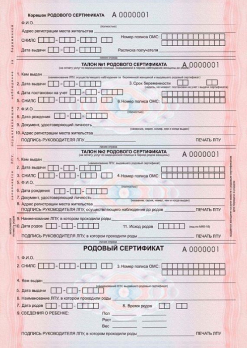 Qu'est-ce qu'un certificat générique? Ceci est un document sous la forme d'un formulaire de la manière prescrite, délivré pour un nouveau-né. Le même terme inclut un ensemble de coupons d'un certain format qui fournissent un soutien matériel en compensant les coûts en espèces pour la grossesse et l'accouchement.