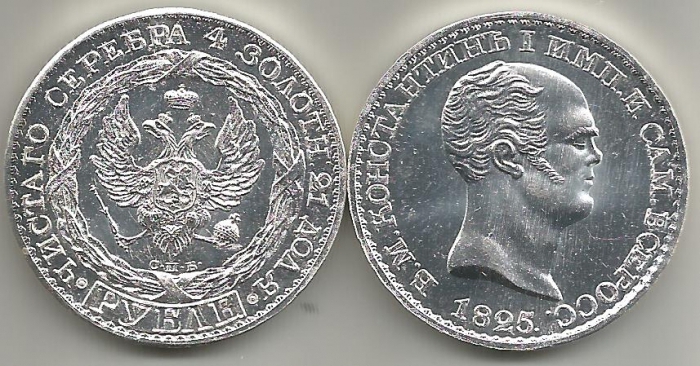 - Konstantinovsky rouble (produit en édition limitée en 1825). C'est probablement la pièce la plus populaire de l'empire russe, qui coûte plus de 100 000 dollars aux enchères. Sa popularité est due au mystérieux processus de frappe. Par exemple, dans la Russie tsariste, il n’ya jamais eu d’empereur portant ce nom, autant d’experts pensent que la frappe était une erreur. D'autres experts disent que la pièce pourrait être émise en l'honneur du couronnement possible de Konstantin Pavlovich. Mais il a abdiqué et son frère, Nicolas Ier, l'a occupé.