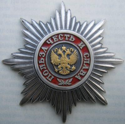 L'étoile de prix est en argent sans dorure. Il a huit rayons polis - shtralov. Au centre de la face avant se trouve un médaillon avec une image dorée des armoiries de la Fédération de Russie, encadré par la devise de l'ordre sur un champ rouge recouvert d'émail.