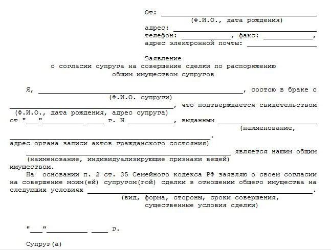 Il est maintenant clair qu’il est si important d’obtenir le consentement du conjoint pour pouvoir exploiter les biens communs du mari et de la femme. Personne n'a le droit d'exiger un tel document, mais sa disponibilité facilite grandement la vie.