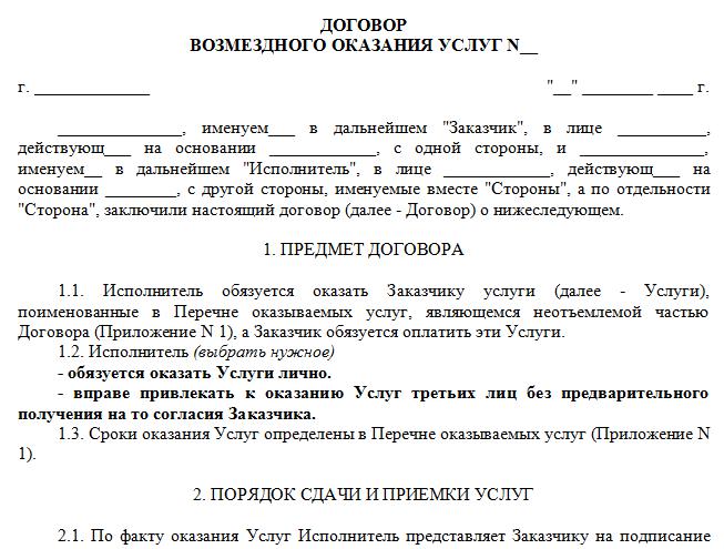 En pratique, il est proposé de remplir un formulaire de contrat. Les citoyens sont confrontés à cette situation lorsqu'ils postulent auprès d'entreprises de logement et de services collectifs, d'autres structures qui fournissent des services de manière systématique et continue. Le formulaire est un texte prêt à l'emploi, il ne reste plus qu'à saisir les données et à mettre des signatures. Les avocats développent des contrats pour des situations atypiques.La structure est choisie pour l'échantillon, puis remplie par des spécialistes, en fonction des besoins de l'entreprise ou des accords conclus. Les conclusions de la pratique judiciaire ne perdent pas leur signification. Le document est préparé en plusieurs exemplaires - un pour chaque côté.