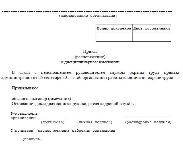 Habituellement, les superviseurs directs des travailleurs sont impliqués dans le contrôle. S'ils identifient des violations, ils rédigent un mémo. Ce document est envoyé au directeur de l’entreprise, qui décide de la nécessité d’une responsabilité disciplinaire en cas de mauvaise exécution des tâches officielles.