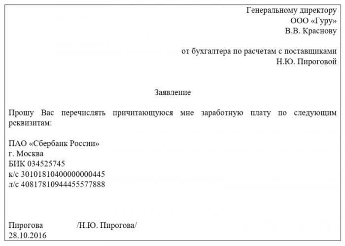 Dans quel cas un exemple d'application n'est-il pas nécessaire pour transférer un salaire sur une carte? Après tout, néanmoins, la préparation de tout un ensemble de documents supplémentaires représente une charge inutile pour les employés, en particulier si des dizaines de personnes travaillent dans l'entreprise.