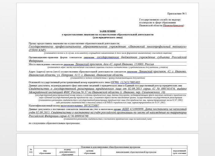 Le nouveau formulaire de candidature a été adopté par la loi n ° 238. Il a été modifié. Auparavant, il était nécessaire de renouveler la licence avant le 1er janvier 2016. Il en était de même pour les données d'accréditation. Après avoir apporté les modifications, il était déjà nécessaire de demander le renouvellement de la licence d'activités éducatives jusqu'en 2017, avant le 1er janvier. En outre, dans les délais prescrits par la loi, il était nécessaire de mettre à jour tous les documents, ainsi que leurs annexes. Ainsi, l’organisation a confirmé son niveau et son type de formation.