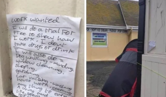 Avec cette note, un homme s'est tenu à un arrêt de bus et a tendu une feuille dans l'espoir que quelqu'un la prendrait. Cependant, les passants, voyant Anthony, s'éloignèrent et passèrent. Personne ne se souciait d'un sans-abri en difficulté.