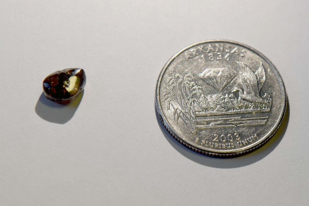 Lanik contourna le cratère pendant environ deux heures avant de trouver un joyau de couleur cognac. Il a remarqué un diamant à environ cinq mètres d'une tranchée longeant le parc.