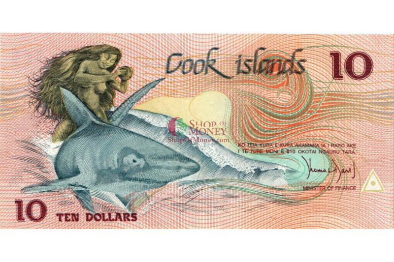 L'un des billets les plus inhabituels est un billet de dix dollars des Îles Cook, qui représente une femme aux seins nus chevauchant un requin. La facture exotique peut décorer n'importe quelle collection.