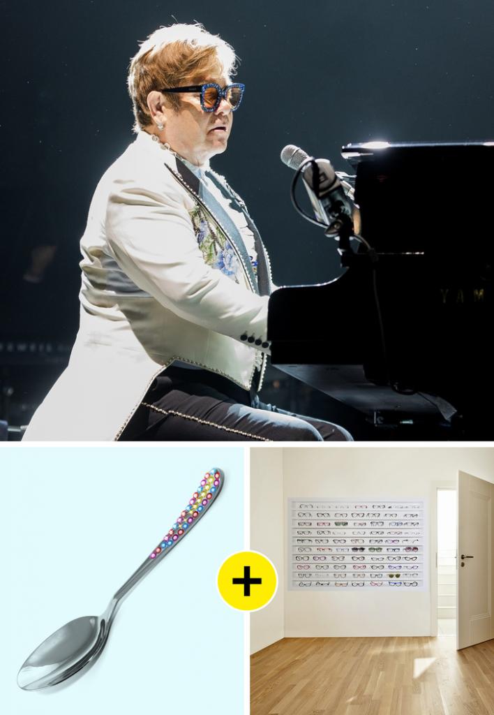Elton John demande à lui fournir une salle spéciale pour sa grande collection de lentilles (au total, il y a environ quatre mille paires). Il est nécessaire de respecter des conditions de stockage spéciales (une certaine humidité et une température ne dépassant pas seize degrés). Il devrait également y avoir des couverts en argent incrustés de pierres précieuses et de fruits exotiques d'Amérique du Sud.