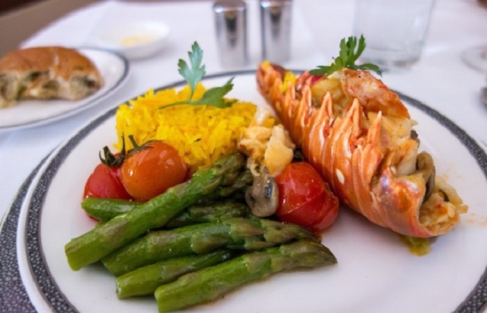 «En entrant dans la chambre, les membres de l'équipage de cabine m'ont salué par mon nom, comme s'ils me connaissaient depuis longtemps. Je n’avais pas faim, mais j’ai entendu de nombreuses critiques enthousiastes au sujet de la nourriture locale. J’ai donc demandé un verre de champagne et un sauté de poulet. Ensuite, ils m'ont servi du homard de Boston frit avec du fromage Emmental, un hamburger américain avec du bœuf et du foie gras », explique Derek.