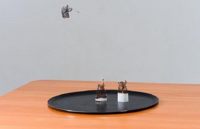Le dioxyde de carbone, qui remplit la balle, est formé à la suite de la réaction de la soude et du vinaigre. En frottant la surface avec un matériau synthétique, nous le chargeons d'une charge électrostatique, grâce à laquelle il peut rester au plafond jusqu'à cinq heures!
