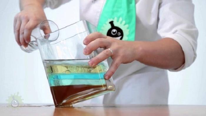 Cela se produit parce que les substances ont trois densités différentes et ne se mélangent donc pas les unes aux autres.
