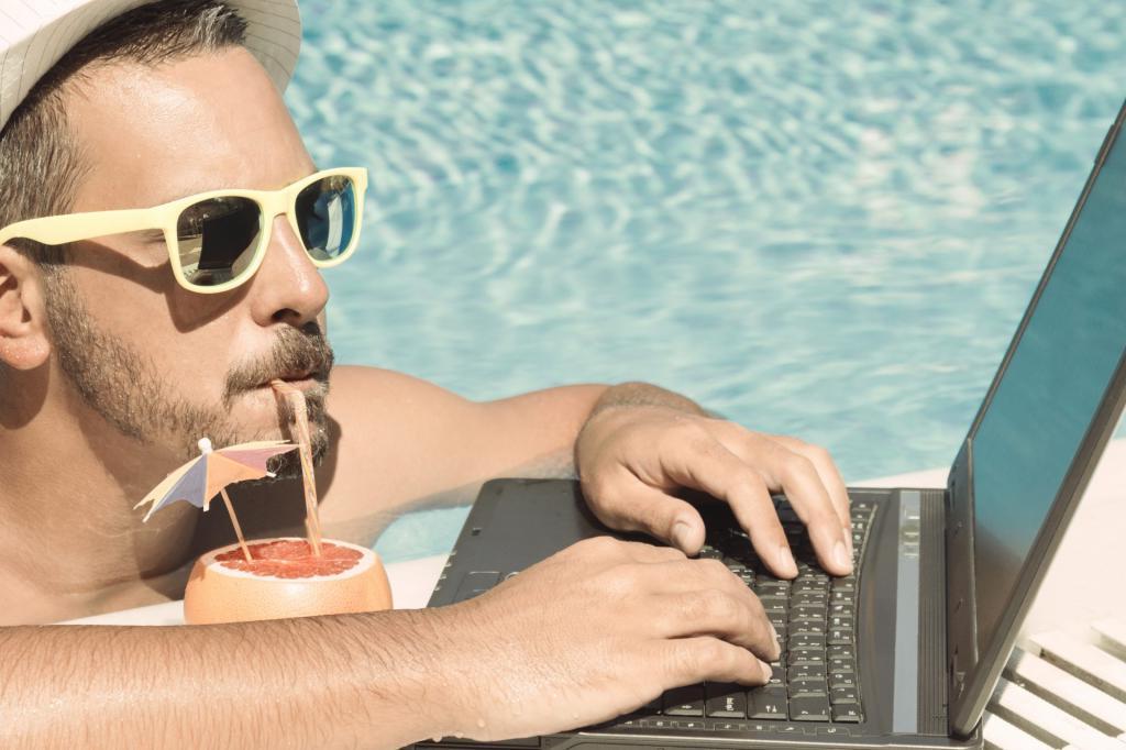 Les pigistes devraient également se trouver dans des endroits où Internet et les communications mobiles sont fiables, de sorte que le travail sur la plage échouera également. En outre, les appels vidéo avec des clients ou des collègues sont monnaie courante, ce qui nécessite le port de vêtements appropriés. Il est à noter que des études récentes ont montré qu'une personne qui occupe tel ou tel travail dans le vêtement de travail standard travaille avec une productivité supérieure à celle d'un ouvrier en pyjama ou pantalon de yoga.