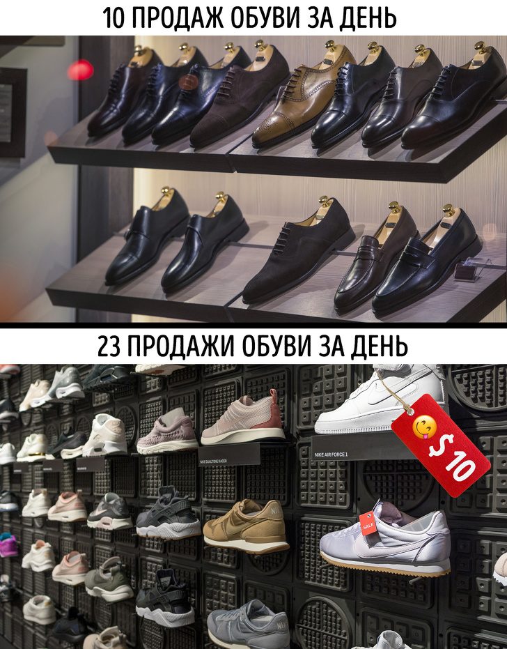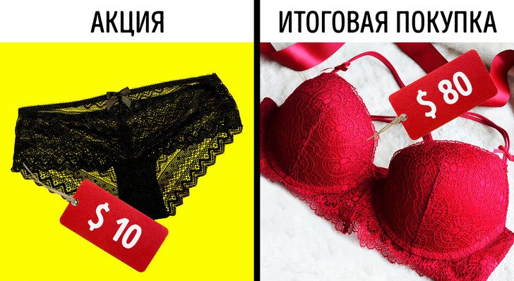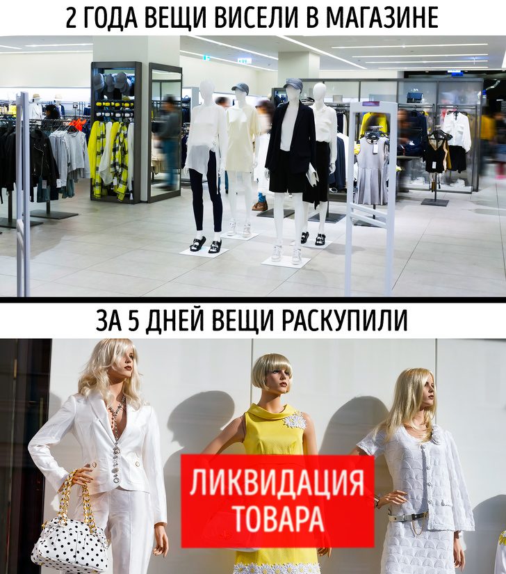 Lorsque les articles sont disposés en pyramides et décorés avec des prix clairs, les ventes sont stimulées. L’acheteur le perçoit comme un stock et s’empresse de tirer parti des offres «avantageuses». Un tel mouvement est souvent utilisé dans les produits périmés, il n’est donc pas gênant de vérifier leur validité.