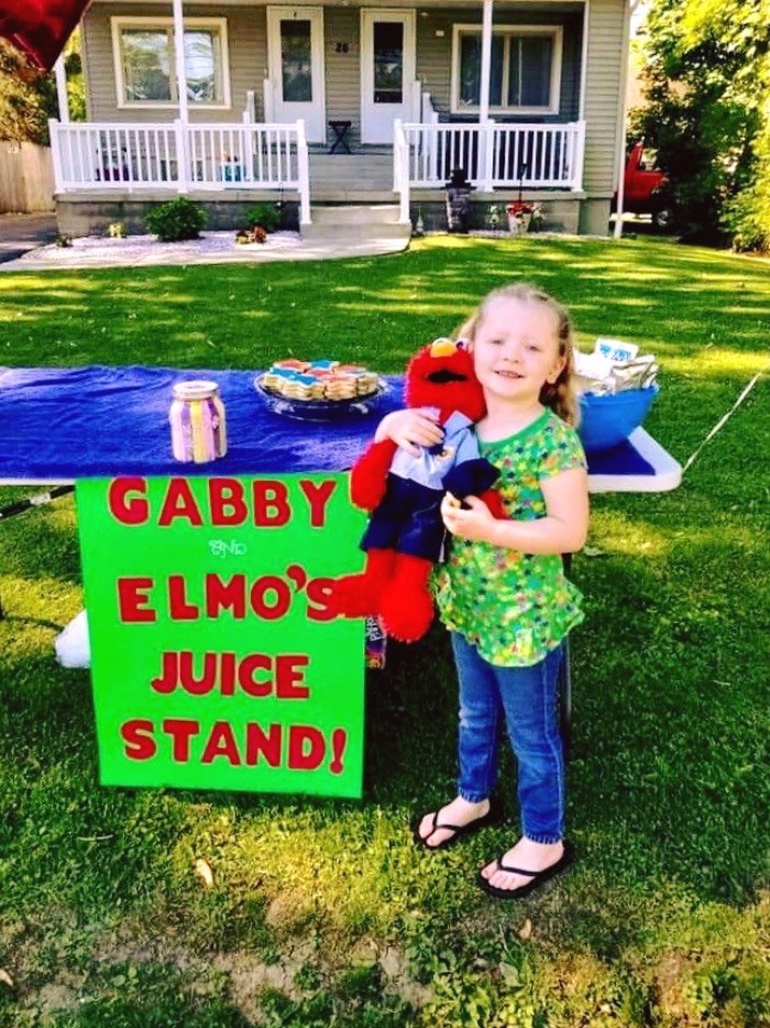 Eileen a donc demandé à sa fille si elle souhaitait vendre quelque chose. Tous les profits lui appartiendront: elle peut les mettre dans une tirelire ou les dépenser à sa discrétion. Gabby a été inspirée et a décidé de vendre la poupée Elmo. Cependant, déjà à la vente, le bébé a soudainement annoncé qu'elle voulait donner le jouet au policier. Elle a vu qu'il travaille seul et qu'il a donc besoin d'une entreprise. Avec Elmo, il sera beaucoup plus amusant!