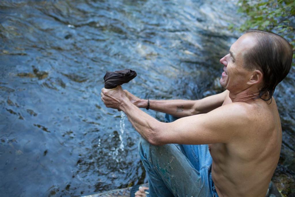 Pour un homme qui n'a ni machine à laver ni sèche-linge, laver signifie laver ses vêtements dans la rivière qui coule dans sa propriété. Il sèche les vêtements sur les branches.