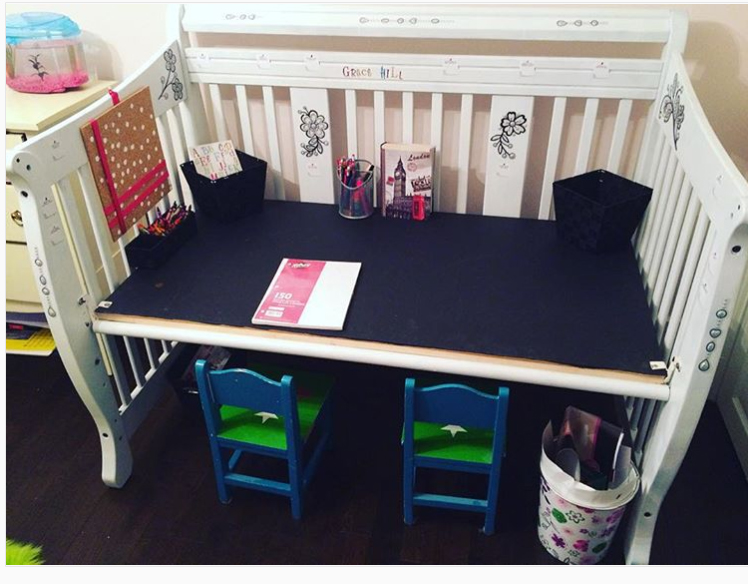 Est-il temps d'aller à l'école? Créez une table pour le futur étudiant. Retirez l'un des murs, fixez le bas du berceau à une hauteur qui convient à l'enfant et choisissez les bonnes chaises.