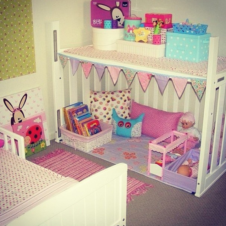 Les enfants adorent construire leurs baraques avec des draps ou des couvertures. Par conséquent, si votre bébé ne dort plus dans son berceau, vous pouvez créer une aire de jeu intéressante à partir du berceau. Le sommet est l'endroit idéal pour stocker des jouets. Vous n’avez même pas à faire beaucoup de changements. Il suffit d'enlever l'un des murs du berceau et de retourner le lit.