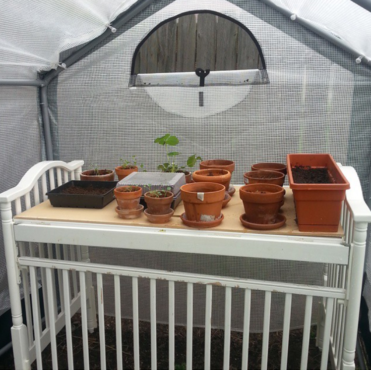 Quelques changements - et du berceau, vous obtenez une table très intéressante pour le jardinage. Pour ce faire, retirez le bas du lit et utilisez-le pour faire un comptoir.