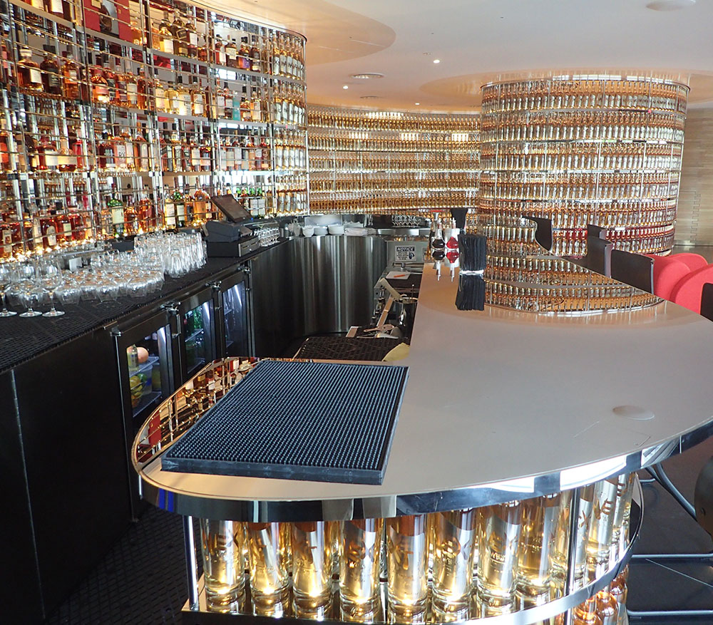 Cependant, même si vous échouez avec le piratage informatique, vous ne serez probablement pas trop déçu. Après tout, le prix du billet comprend également la dégustation de différents whiskies. Le bar à l'intérieur propose non seulement un menu exceptionnel, mais aussi une atmosphère incroyable avec un mur en forme de vague composé de 2500 bouteilles de whisky.