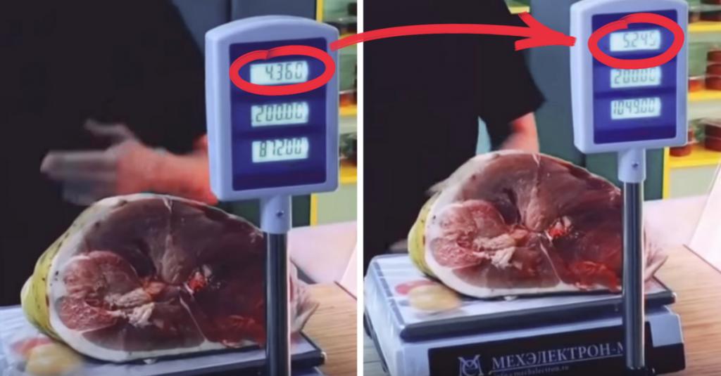 Parfois, à première vue, le vendeur met un sac en plastique sur la surface afin de maintenir la propreté de la surface de la balance électronique. Le vendeur attache le colis avec du ruban adhésif au boîtier sur lequel est tournée la balance. Lorsque vous mettez votre achat sur la balance, le vendeur, comme par hasard, pousse les marchandises un peu sur le côté. Avec ce mouvement, il fournit au paquet une tension supplémentaire. La pression sur la balance augmente et le poids que vous voyez sur l’affichage électronique est bien sûr beaucoup plus élevé que le poids réel de votre achat. Bien sûr, vous pouvez suivre les mains du vendeur. Mais il est même préférable de lui demander de retirer le sac de la balance.