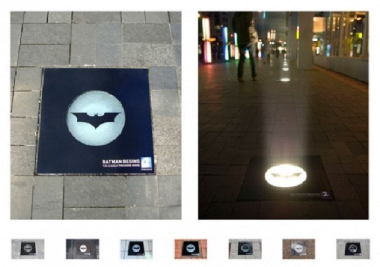Publicités lumineuses avant la sortie de la location de films Batman.