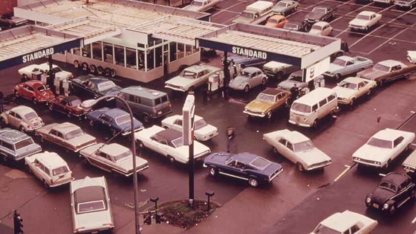 Sur la photo un peu plus haut, nous voyons un groupe de voitures à la station-service. Les États-Unis font face à une pénurie de gaz.